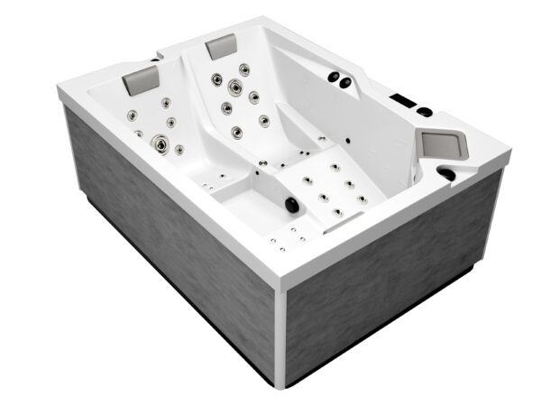 Die Wanne besteht aus Acrylwanne ABS – diese wird wärmeisoliert und durch ein italienisches Material namens Sirtek auf Polyurethanbasis versteift. Dank diesen sorgfältig ausgewählten, erstklassigen Materialien und der strengen Prüfung bereits fertiggestellter Produkte können wir eine extreme Beständigkeit, Langlebigkeit und Zuverlässigkeit jedes Whirlpools garantieren. Die Wannen verfügen über eine Pumpe und das zuverlässiges Heizsystem Balboa.