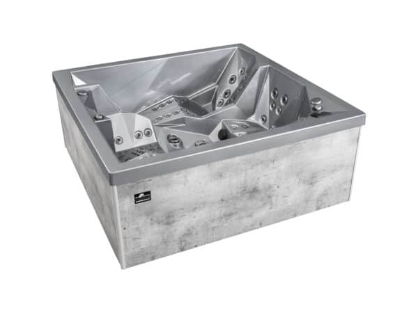 Genießen Sie das geräumige Modell DIAMOND mit bis zu 5 Personen gleichzeitig. Entspannen können Sie entweder auf einem der zwei Liegeplätze oder auf drei Sitzplätzen. Für eine wohltuende Massage sorgen 84 Düsen (76 Hydromassagedüsen und 8 Luftdüsen). Zur Standardausstattung gehören farbige LED-Beleuchtung, Wasserfall, Steuersystem, Titan-Wassererwärmung sowie eine Thermoabdeckung. Die neue, beeindruckende Spa Touch 4 graphische Benutzeroberfläche bietet eine mühelose und verbesserte Benutzererfahrung. Sie wird mit einem eingebauten Wi-Fi-Modul geliefert!