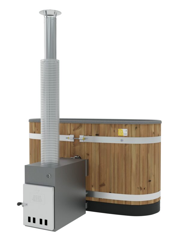 Als Außenofen kommt der grau gehaltene CULT-si zum Einsatz, der sich ideal zum Beheizen kleiner Badefässer eignet. Er wurde aus hochwertigem Meeresaluminium gefertigt, was eine äußerst gute Wärmeleitfähigkeit sicherstellt.