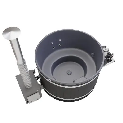 Water Jets Flow System Hybrid Modell umfasst sowohl ein Water Jets -Durchflusssystem als auch einen holzbefeuerten, externen Macu Badefassofen. Das Durchflusssystem Water Jets (Wassertherapiedüsen) besteht aus einer elektrischen Heizung, einem Filtersystem und vier Wassertherapiedüsen. Heizsystem mit 3 kW elektrischem Widerstand. Die Heizung arbeitet bei eingeschaltetem Filter mit einem Strömungsschalter am Widerstand. Die geschätzte Aufheizzeit beträgt etwa 1°C/Stunde. Eine Schutzhaube für das System ist im Lieferumfang enthalten. Das Trockengewicht des Hot Tubs beträgt 92 kg, die Bruttoleistung des Water Jets Durchflusssystems 3 kW und die auf das Wasser übertragene Nettoleistung 3 kW. Als Außenofen wird der graue Macu Ofen geliefert, der sich ideal zum Beheizen mittelgrößer Badefässer eignet. Er wurde aus hochwertigem Meeresaluminium gefertigt, was eine äußerst gute Wärmeleitfähigkeit sicherstellt.