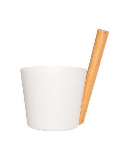 Der Rento Saunaeimer aus weißem Aluminium verbindet zeitloses Design mit klarer Funktionalität. Die elegante, helle Oberfläche wirkt modern und fügt sich harmonisch in klassische wie auch moderne Saunakabinen ein. Der Griff aus wärmebehandeltem Bambus setzt einen natürlichen Akzent und sorgt für eine angenehme, sichere Handhabung.